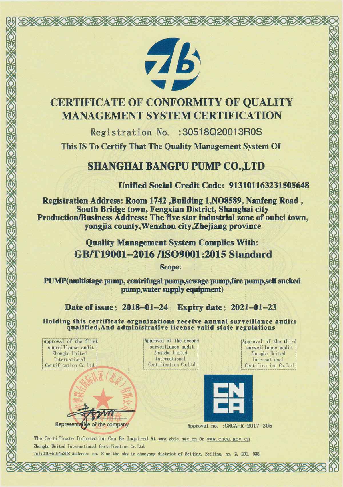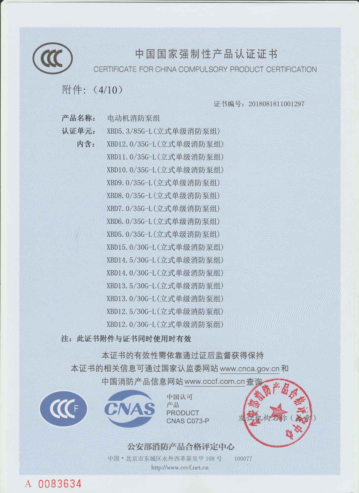 公司生产产品通过ISO9001:2015国际质量体系认证,消防系列产品取得CCCF国家强制性认证证书,通过认证型号规格达500余个,并取得全国工业产品生产许可证,产品经权威机构检测,全部达到规定要求。 公司主营产品有:生活循环泵,消防用泵,污水泵,化工用泵,二次供水设备,控制柜等。产品被广泛应用于石油、化工、冶金、矿山、发电、热力、城市建设、污水处理、消防设施、集中采暖、农业排灌等行业。